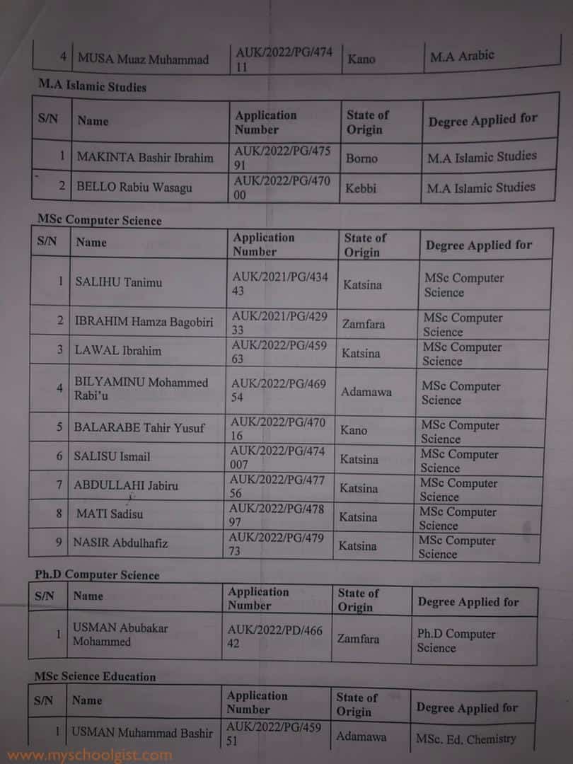 The under-listed candidates have been offered Provisional Admission into the postgraduate programmes of the Al-Qalam University, Katsina (AUK) for the 2022/2023 Academic Session.